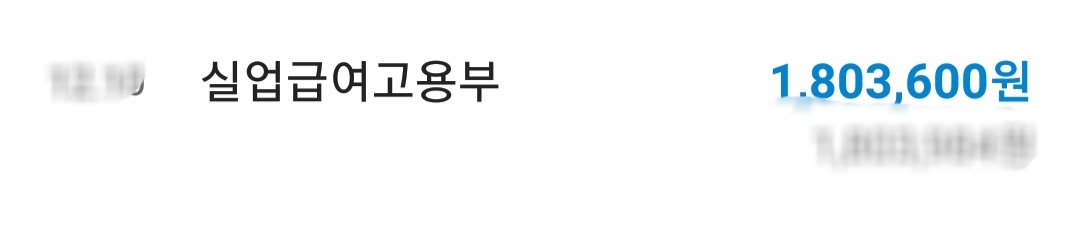 이 사진은 실제로 실업급여가 계좌로 들어온 것을 보여줍니다. 실업급여는 한 달에 한 번씩 들어오는데 몇 번 들어오는지는 개인마다 다릅니다. 고용보험에 가입된 기간이 길수록 실업급여가 여러 차례 들어올 것입니다. 금액 역시 매달 일정한 것이 아니라 조금씩 다릅니다.