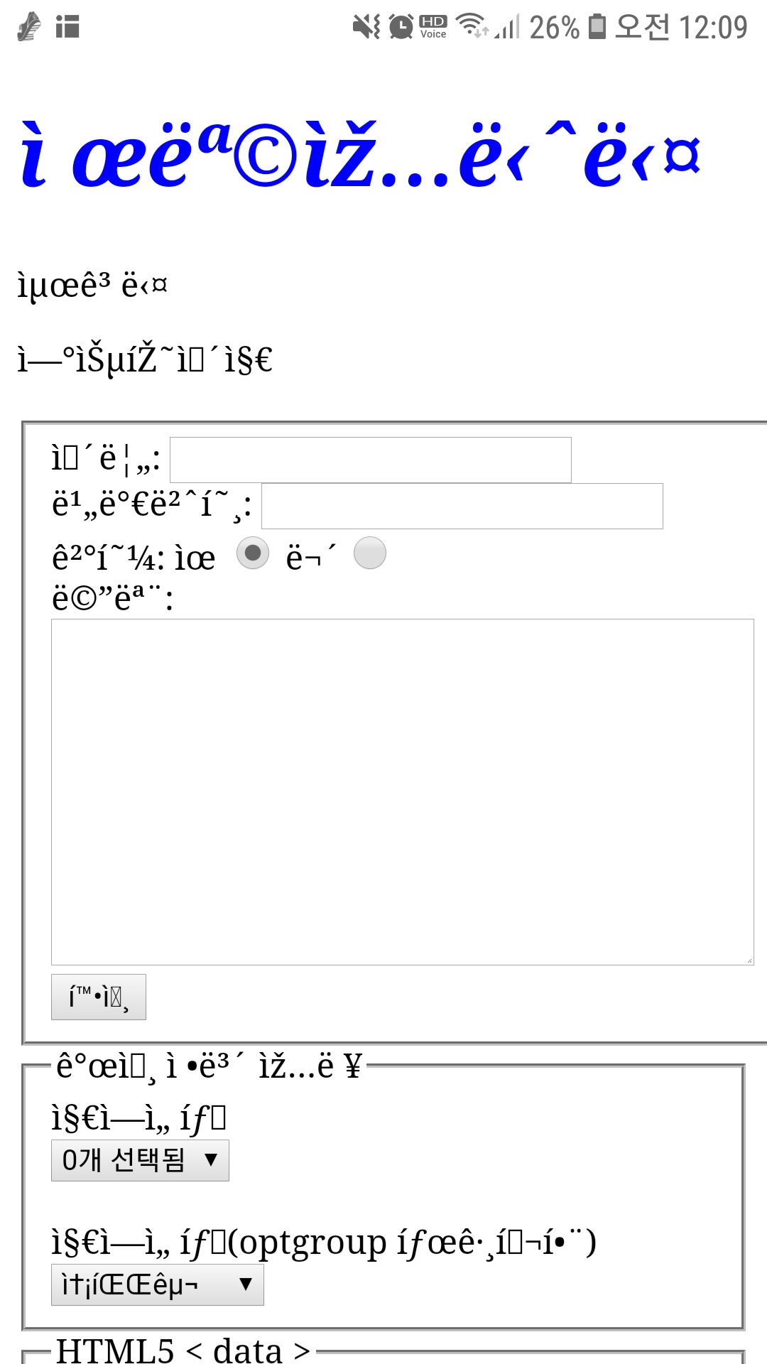 하지만 이를 그대로 가져와서 모바일에서 접속을 할 경우 다음과 같이 한글이 깨지는 현상이 생길 수 있다. 그래서 방법을 찾고자 구글에 검색을 해보았다.