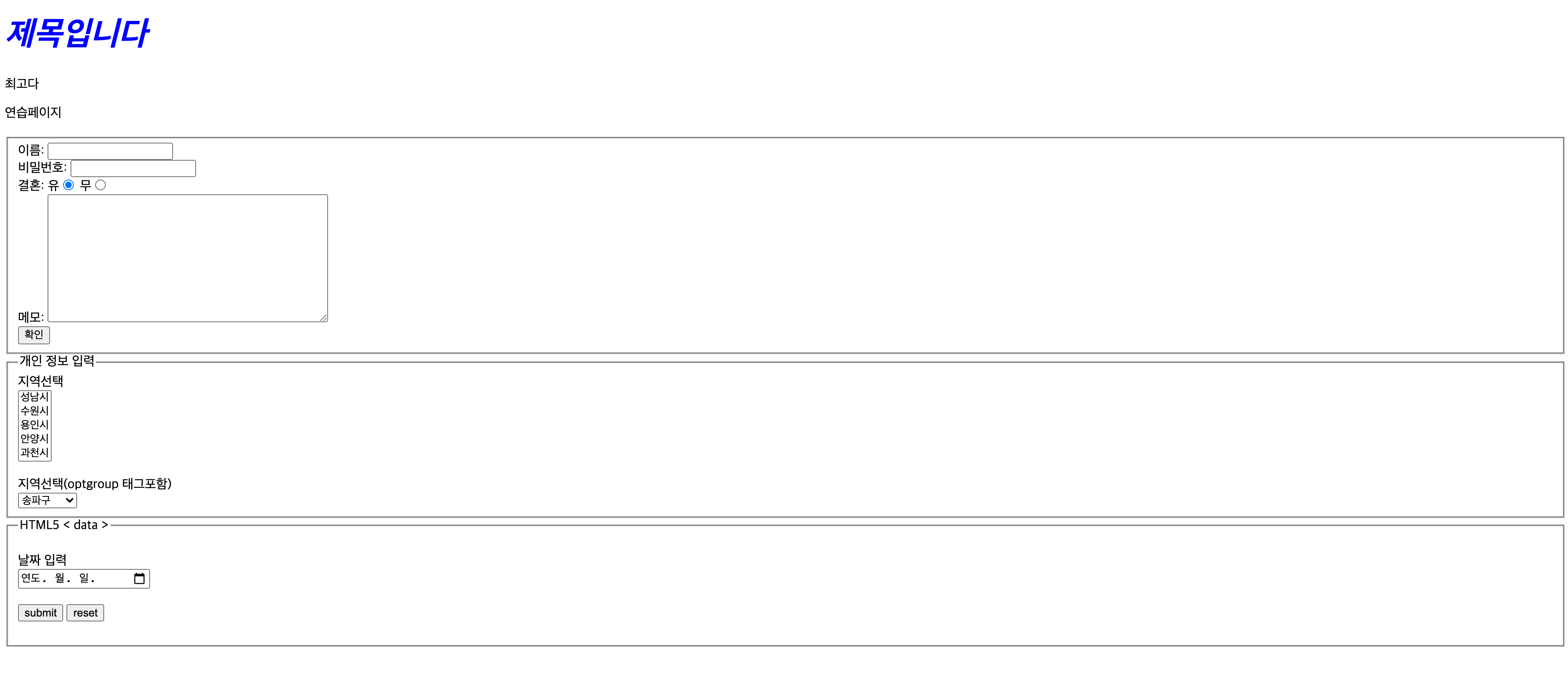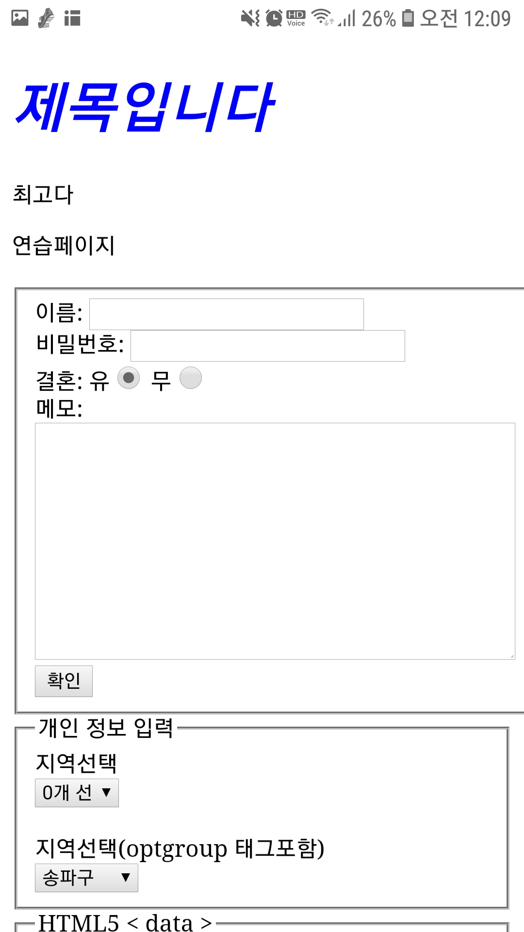 다음은 웹에서 예제로 만든 페이지다. 간단하게 구현이 되어 있고 다른 꾸밈은 거의 없는 상황인데 지금은 PC에서 웹 브라우저로 접속했고 그 기준으로 만들었기 때문에 별다른 이상없이 잘 나온다.