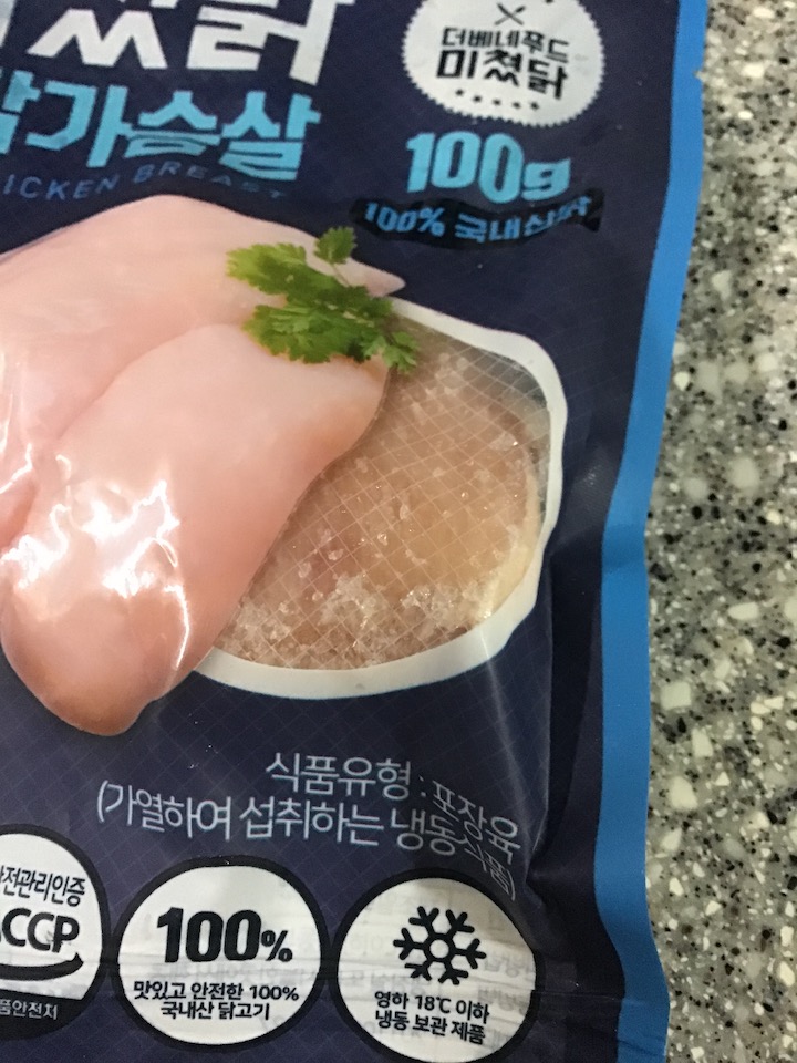 그렇다면 닭가슴살에는 얼마나 많은 단백질이 들어있는 것일까요? 단백질 100g당 약 23g의 단백질이 들어있습니다. 이는 굉장히 많은 수치입니다. 두부의 경우 100g의 약 8g의 단백질이 들어있고 돼지고기 앞다리살도 비슷하게 들어있지만 지방의 함량은 훨씬 높습니다. 지방을 덜 먹으면서 단백질을 많이 먹을 수 있다는 것이 큰 장점입니다. 게다가 이 더베네푸드 생닭가슴살은 100g 단위로 포장이 된 상태로 판매가 됩니다. 한번 먹을 때마다 하나씩 꺼내서 먹으면 되니까 정말 편하더군요. 국내산이라는 것도 더베네 푸드 생닭가슴살을 마음 편하게 먹을 수 있는 이유입니다. 가격도 100g에 1000원도 안하는 가격인 만큼 다이어트를 생각하고 계신 분들에게 정말 추천하고 싶습니다.