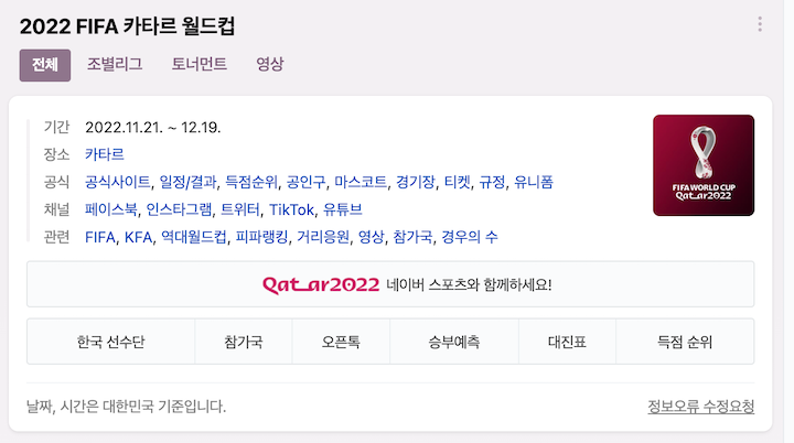 2022 카타르 월드컵 모든 경기를 중계해주는 네이버 스포츠이기 때문에 많은 분들이 보실 것 같습니다. 특히 다른 플랫폼과 비교하여 돈을 내거나 회원가입을 할 필요가 없기 때문에 더 편하다는 장점이 있지 않나 싶습니다. 일본 크로아티아 경기는 우리의 라이벌 일본의 경기이기 때문에 많은 분들이 보실 것 같습니다.