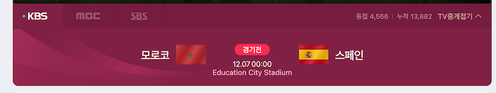 카타르 월드컵 모로코 스페인 16강 실시간 라이브 축구 중계 보기