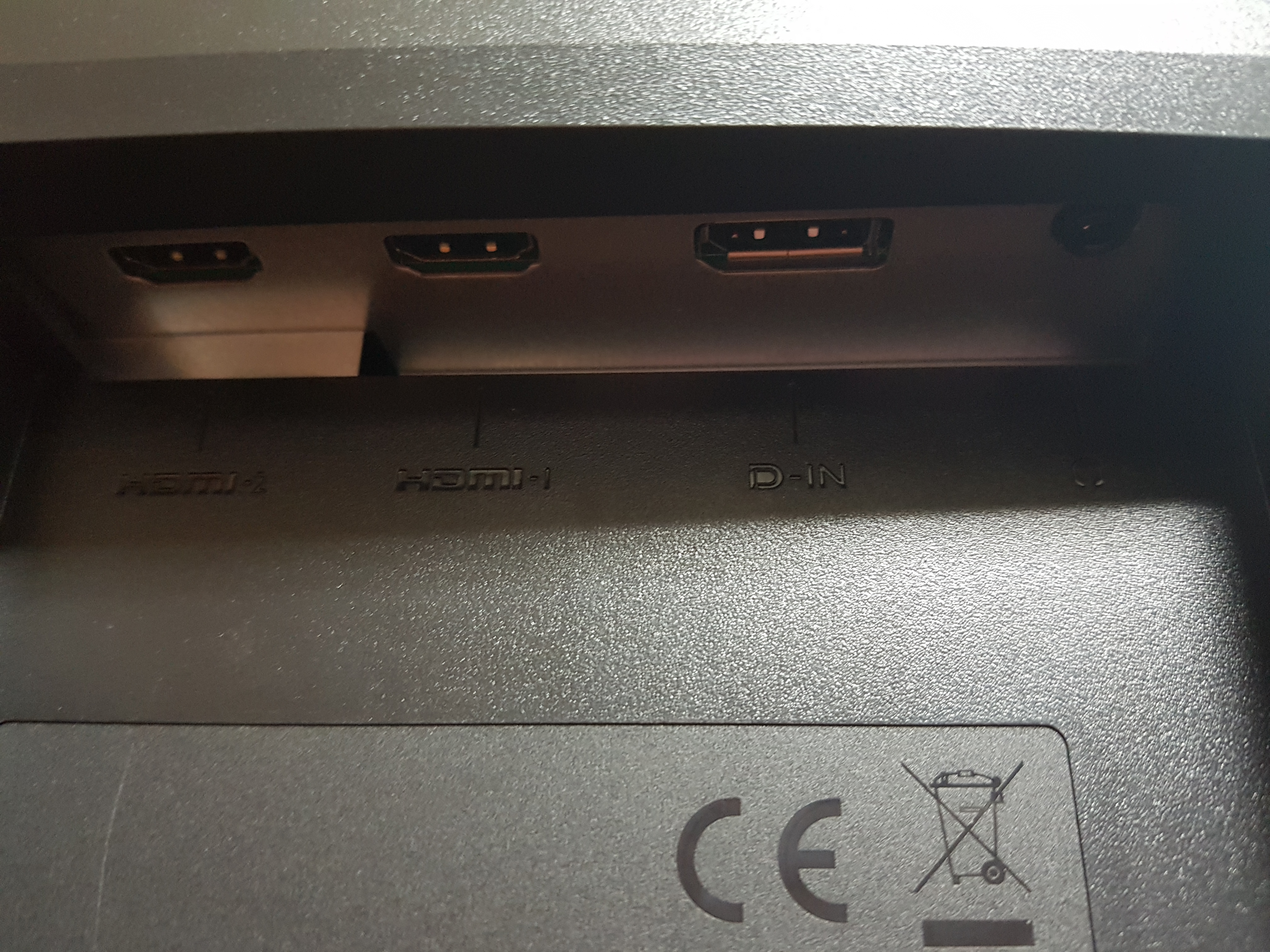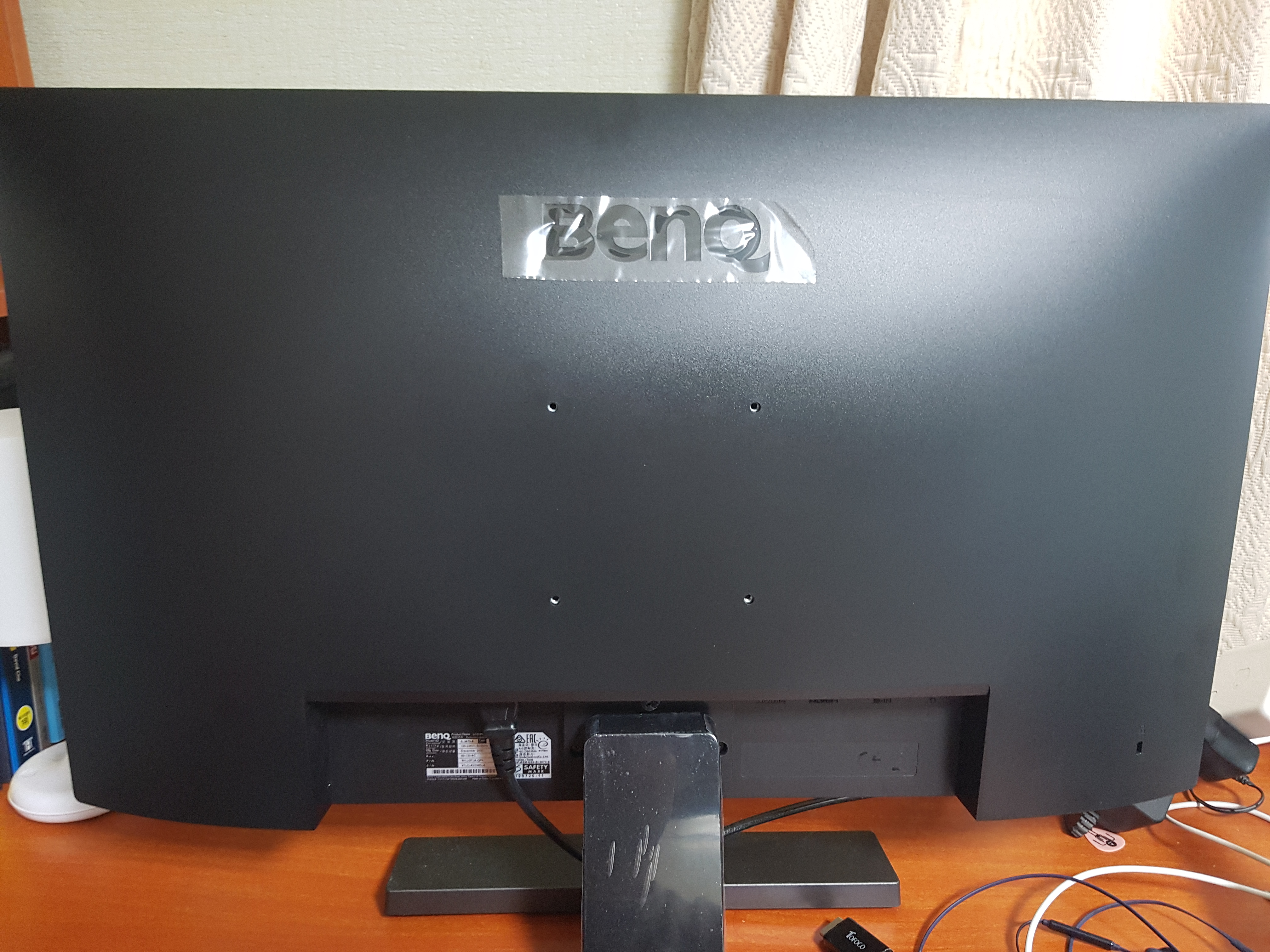 모니터가 기본적으로 크다 보니 뒷모습을 봐도 웅장한 느낌이 든다. 가운데 뚫려있는 구멍은 후에 모니터 암을 사용할 수 있도록 하는 부분이다. 저 구멍에 모니터암을 연결하면 모니터를 좀 더 자유자재로 사용하는 것이 가능해진다.