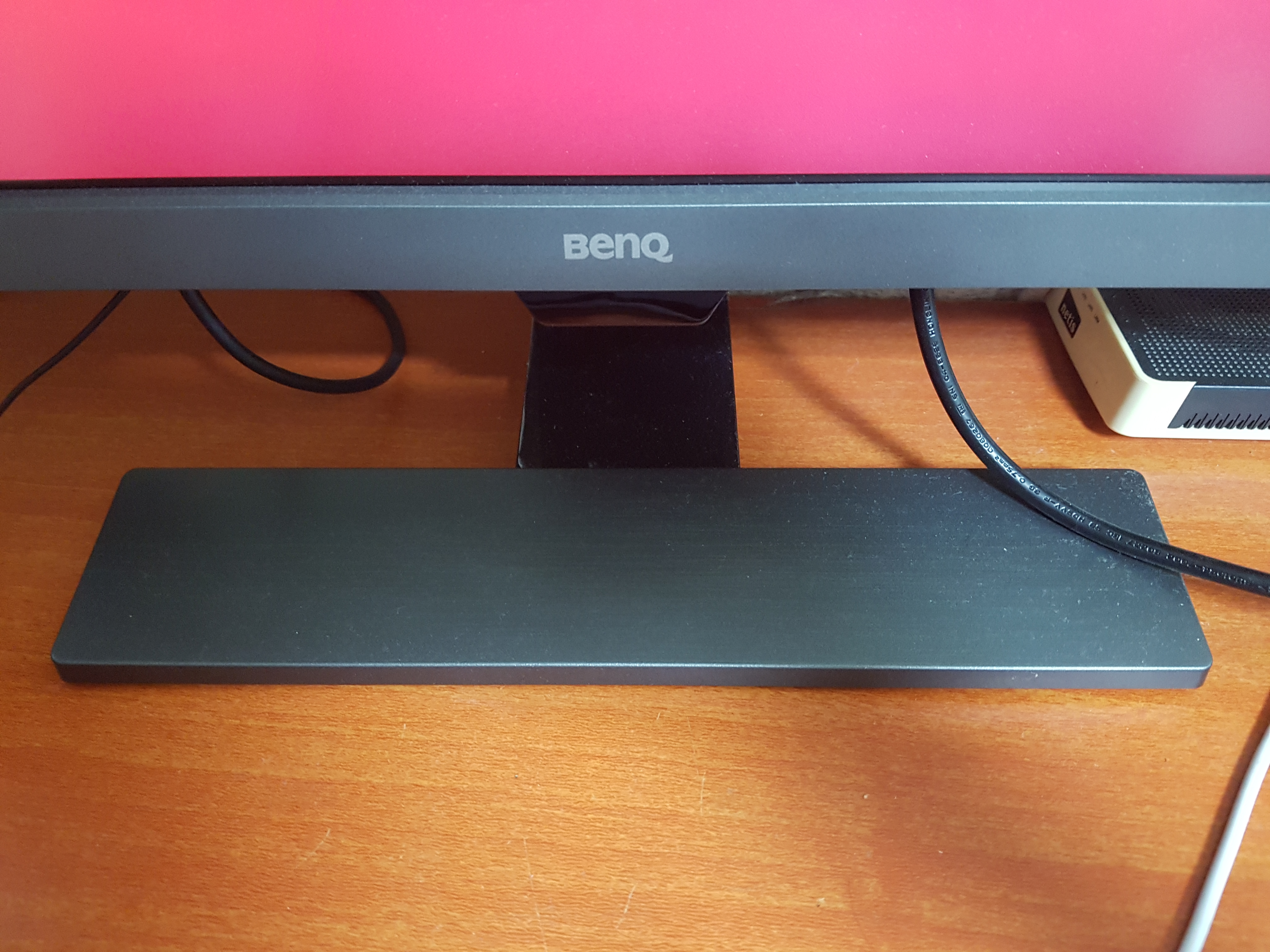 심플한 디자인이 받침대다. 물론 내 책상에 물건이 좀 많아서 지저분한 느낌이 들지만 모니터 자체는 단순하고 깔끔한 디자인이기 때문에 인테리어적인 면에서도 괜찮다. 좀 아쉬운 부분은 모니터가 높낮이 기능이 되지 않아서 자신의 눈높이에 맞추는 것이 어렵다는 점이다. 기울기 기능은 있지만 그 외에 위아래 높낮이 조절 기능이나 사이드로 이동하는 기능은 없다. 그 부분이 이 모니터를 사면서 가장 아쉬웠던 부분이다.
