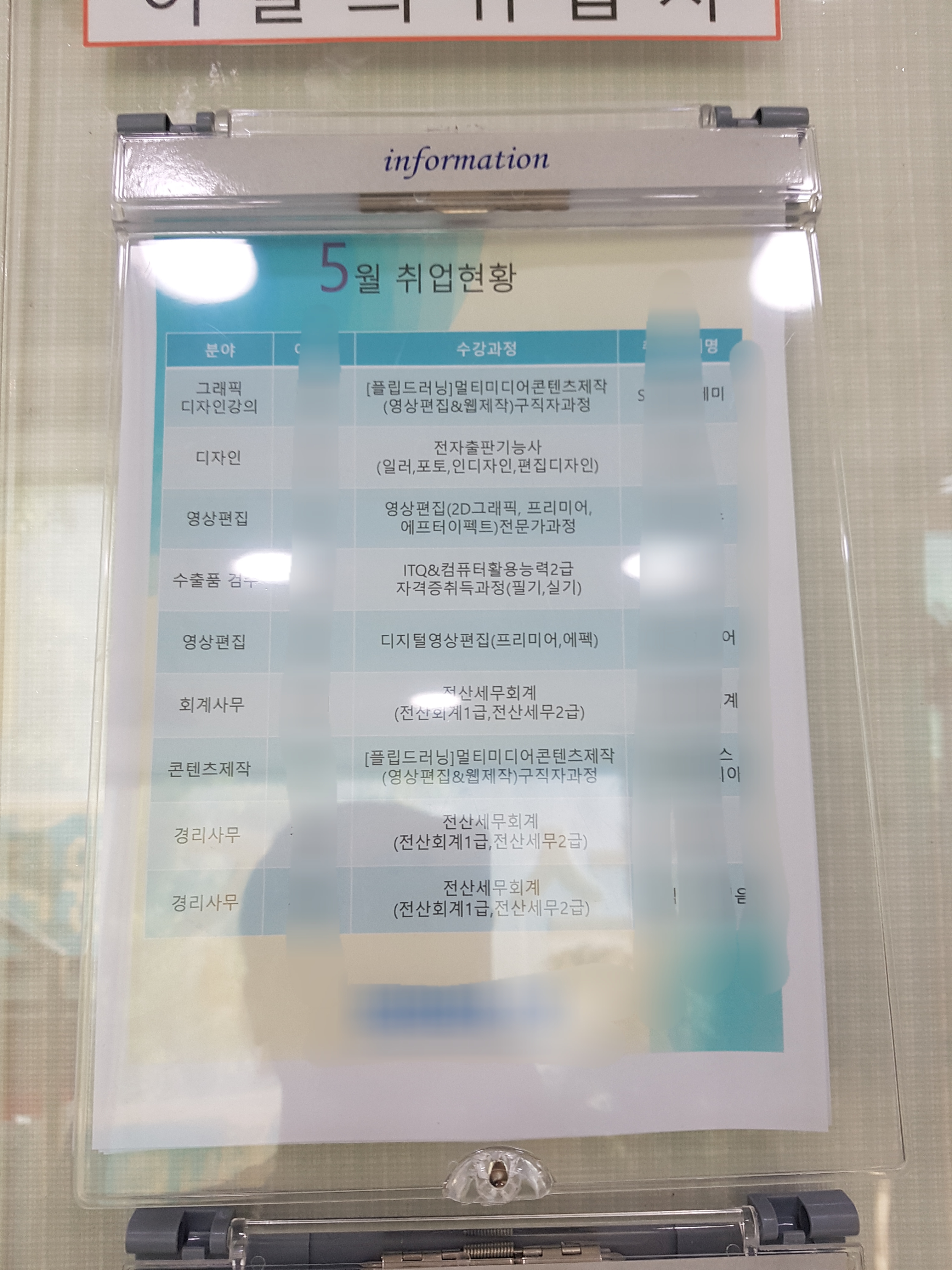 학원 취업자 명단이다. 이게 전부는 아니겠지만 그래도 이 학원에서 수강하는 많은 사람들이 취업을 했나 보다. 나도 열심히 해서 여기에 명단을 올렸으면 좋겠다.