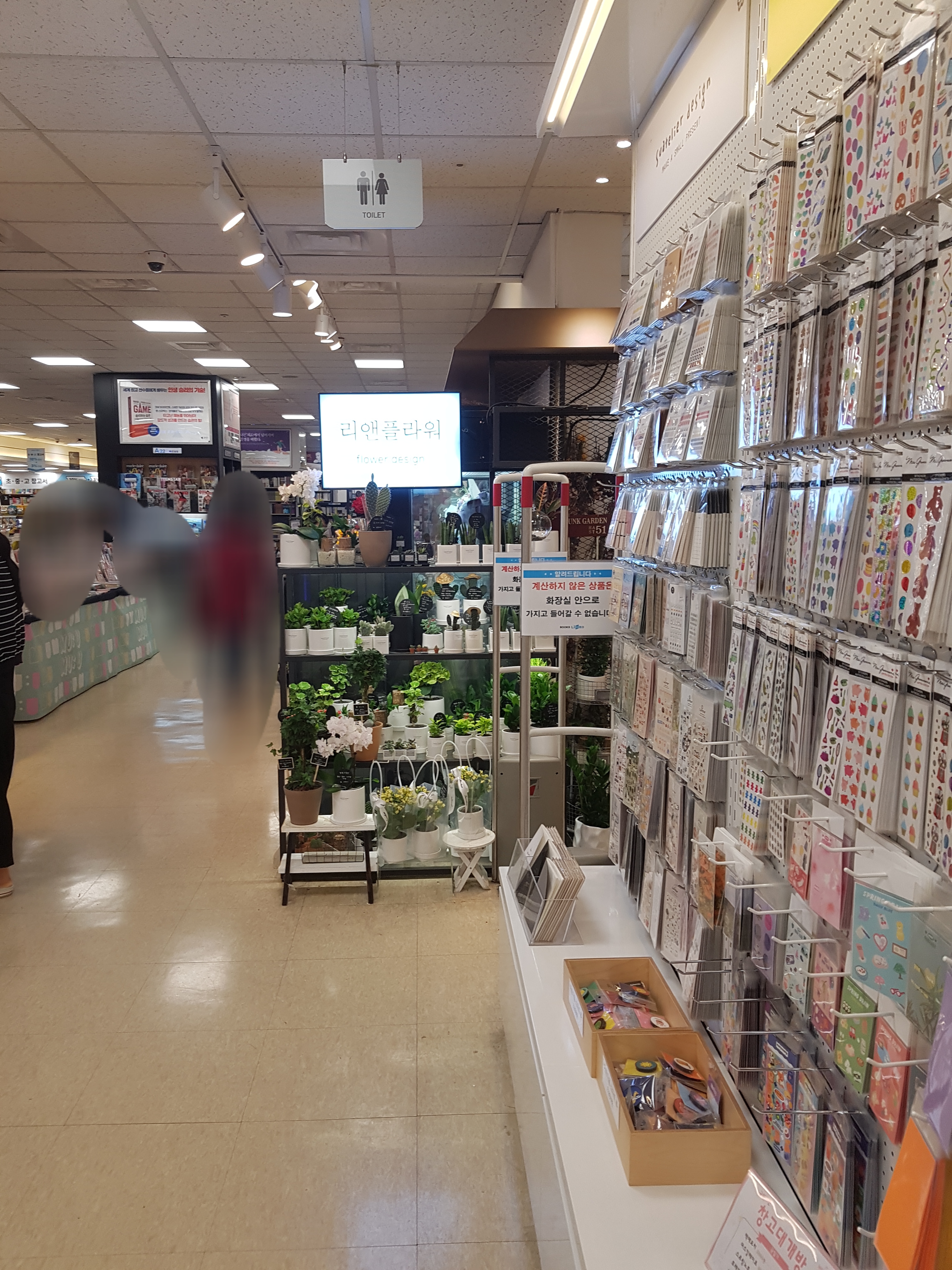 서점이니 책은 물론이고 각종 꽃이나 굿즈, 생활용품 등 다양한 것들이 많이 있다. 책을 보는게 좀 싫은 사람이라면 생활용품 구경하면서 시간을 보내기에도 좋은 곳이다. 시원함은 덤이다. 그리고 급할때 화장실을 이용할 수 있는 곳이기도 하다. 사실 서점을 그런 용도로 생각하는 사람도 많을 것이다.