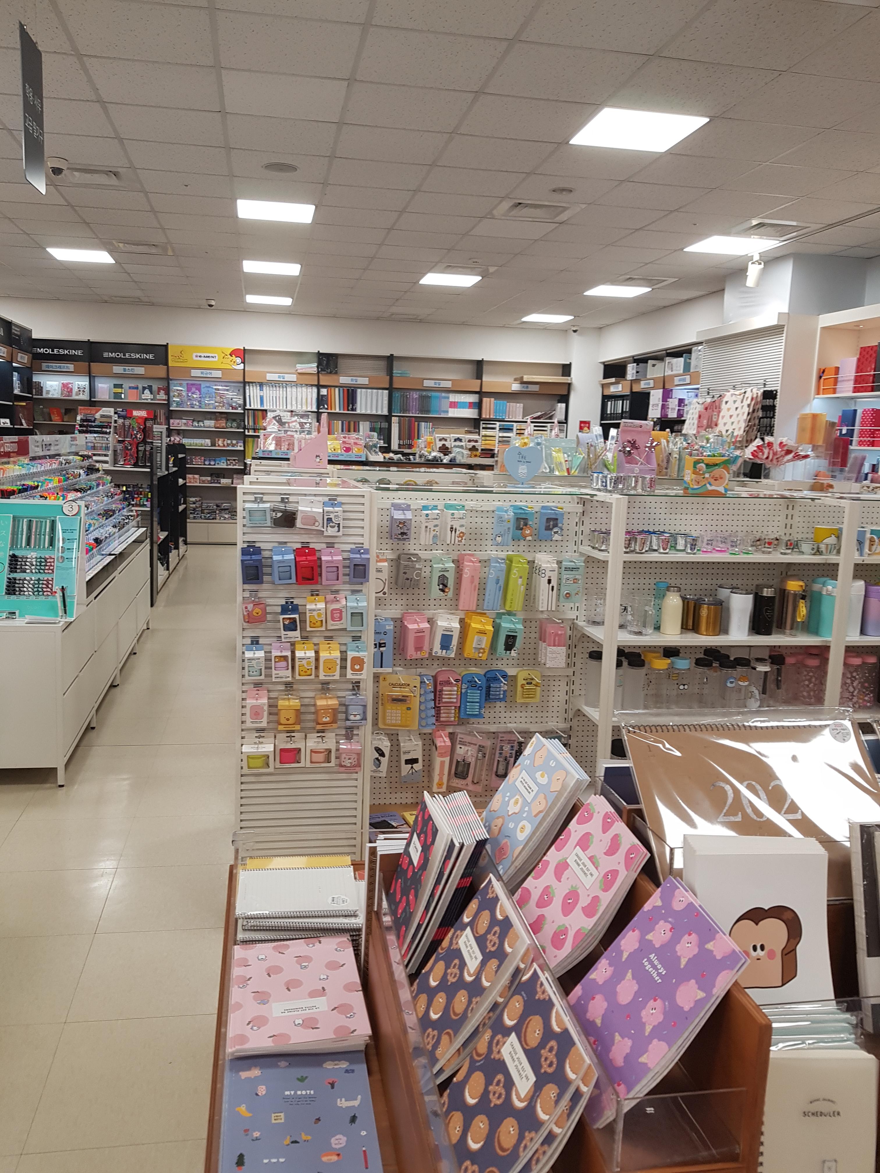 한쪽에는 아트박스가 있다. 필요한 물건이 있으면 언제든지 살 수 있는데 요즘에는 필요해서 산다기보다는 그냥 예뻐서 순간 훅해서 사는 경우가 더 많다. 그렇게 사놓고선 막상 집에서 알차게 쓴 적이 별로 없다. 펜이나 공책같은 물건은 잘 쓰지만 애매한 전자기기는 잔고장도 많아서 그냥 눈으로 보기만 하고 사진 않는다.