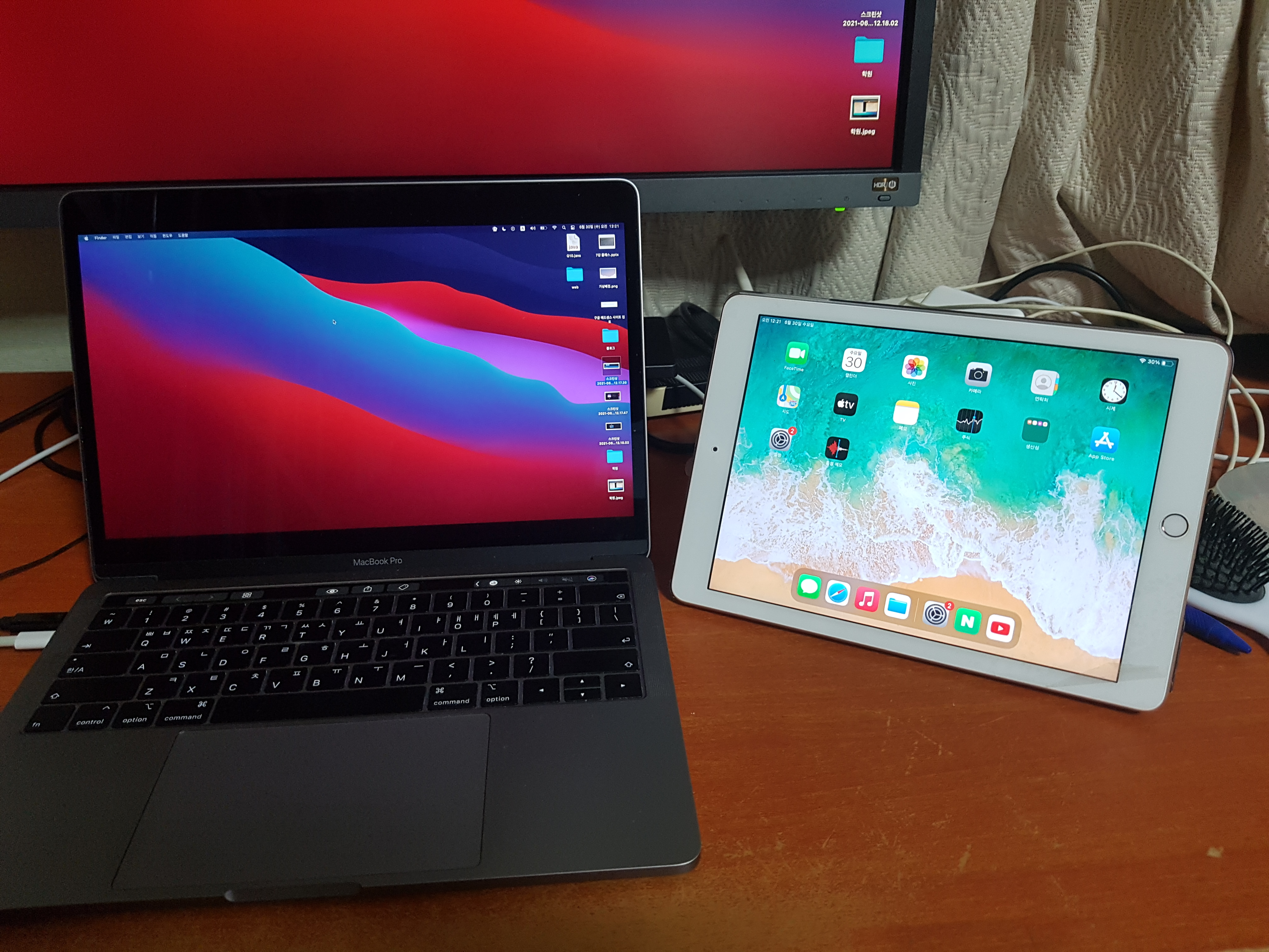 그래서 그 당시에 이것저것 알아보다가 우연히 맥북과 아이패드를 연결해서 화면을 미러링할 수 있다는 사실을 알게 되었다. 맥북의 화면을 아이패드로 확장해서 듀얼 모니터로 사용할 수 있다는 것이다. 그래서 얼른 방법을 알아내서 한 몇 달간은 정말 유용하게 잘 사용했다.