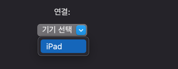 4. 그러면 사이드카 화면이 나온다. 여기서 연결을 보면 기기를 선택할 수 있는 기능이 있다. 여기서 자신이 사용할 아이패드가 맥북과 가까운 거리에 있어야 한다. 사이드카가 블루투스와 비슷한 기능을 구현하고 있어서 거리가 멀어지면 신호가 없을 수 있다.