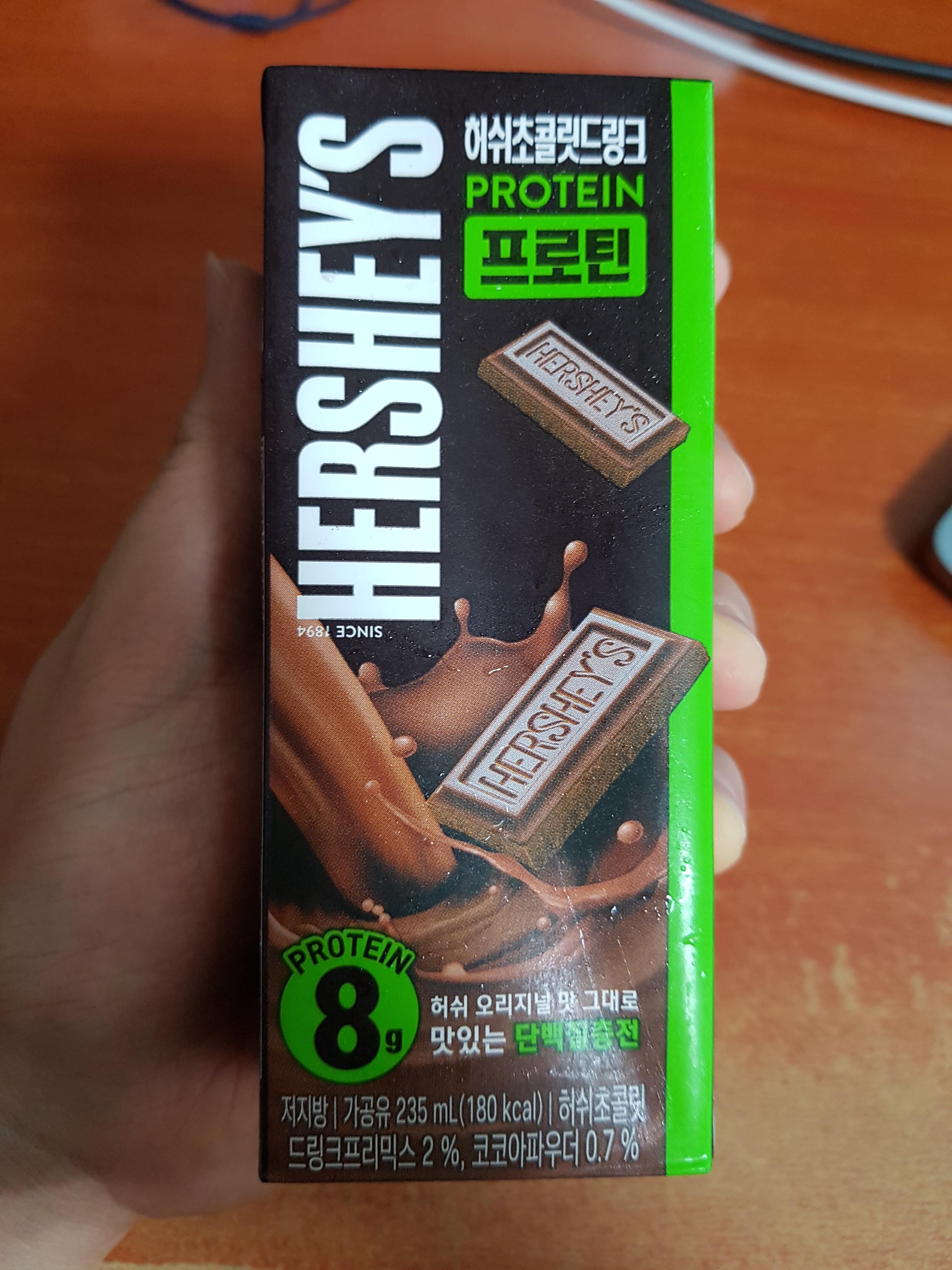 처음에 이 제품을 편의점에서 봤을 때 너무 신기했다. 그러면서도 한편으로는 의심을 갖기도 했다. 과연 허쉬초콜릿드링크의 맛을 유지하면서 프로틴이 들어간다는 것은 어떤 맛일지. 그래서 편의점에서 보자마자 얼른 구매했고 리뷰를 하면 좋을 것 같다는 생각을 했다.