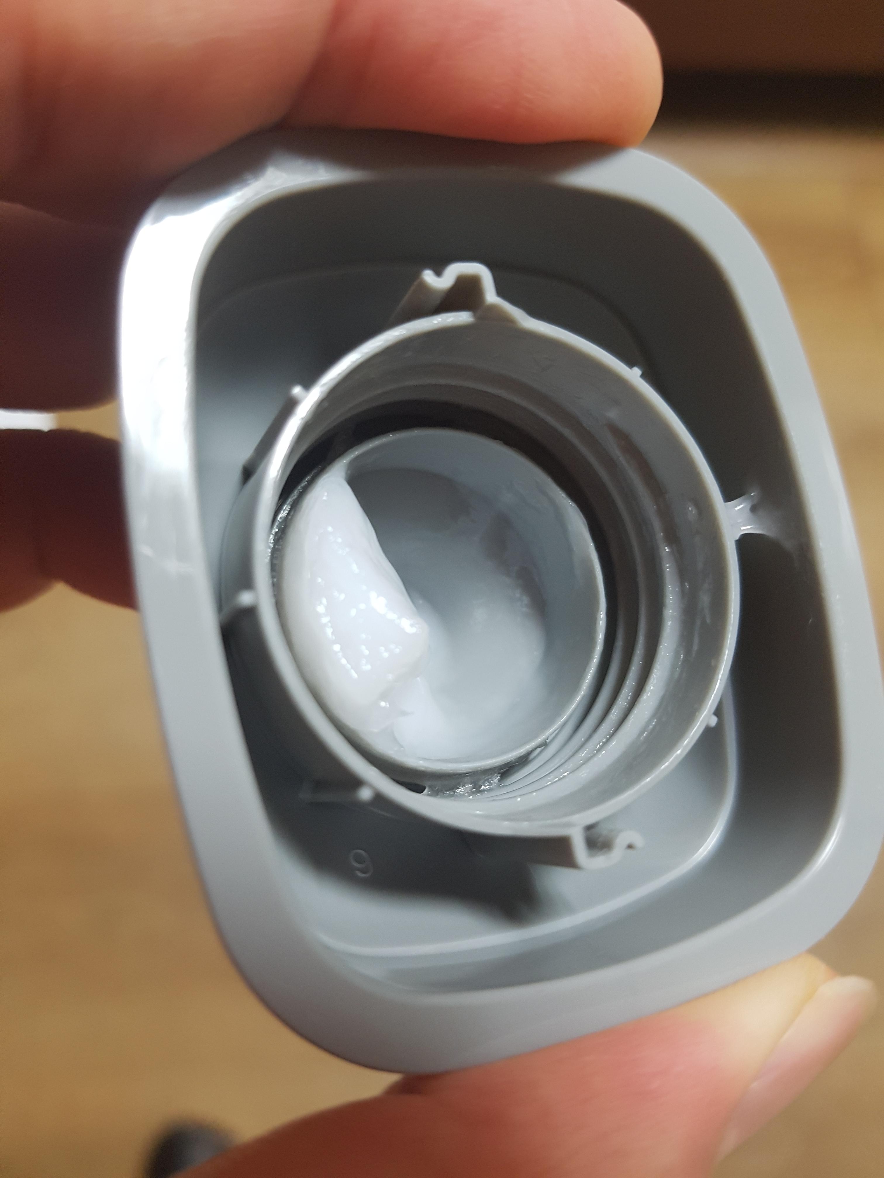 그래서 이렇게 안쪽 뚜껑까지 제거해서 사용하는 것이 더 편하다. 실제로 나는 이렇게 사용을 하고 있는데 이렇게 하면 그냥 한두 번만 짜서 사용해도 두피 전체에 도포할 수 있는 양이된다.
