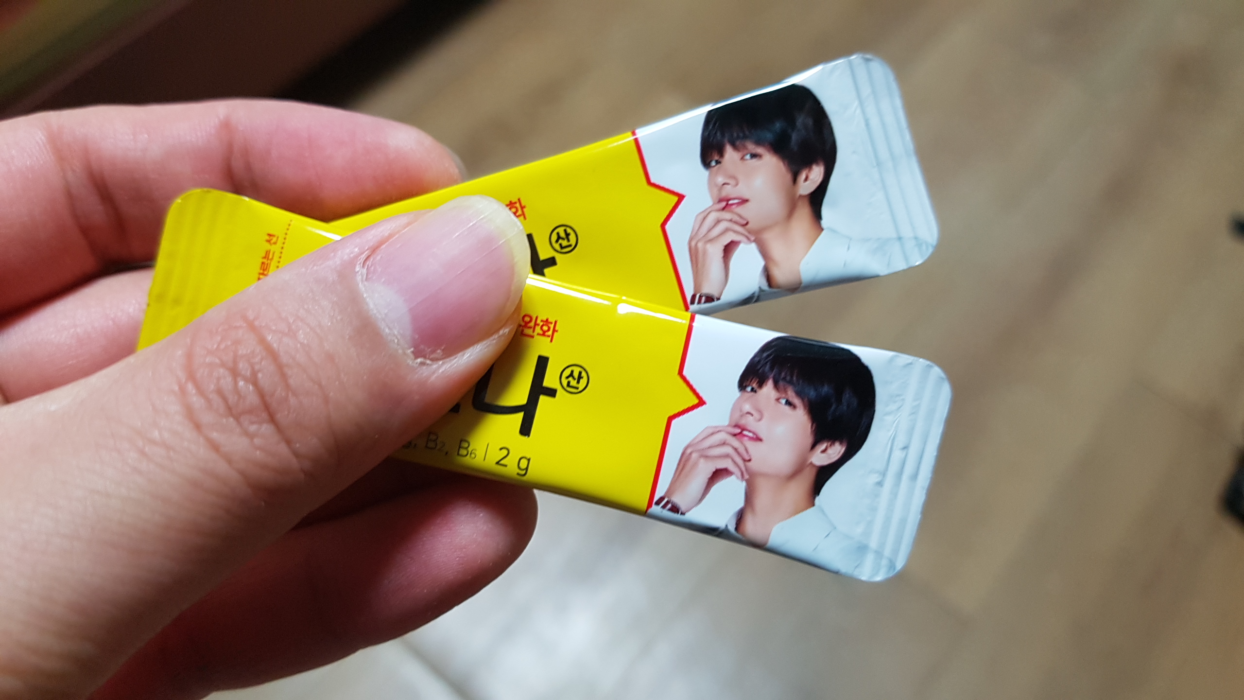 아직도 남은 레모나가 수두룩하다. 포장이 뜯겨져있는 이유는 각 포장마다 멤버들이 다르기 때문이다. 하나에 10포가 들어있는데 그 10포에 한 멤버의 얼굴이 그려져 있다.