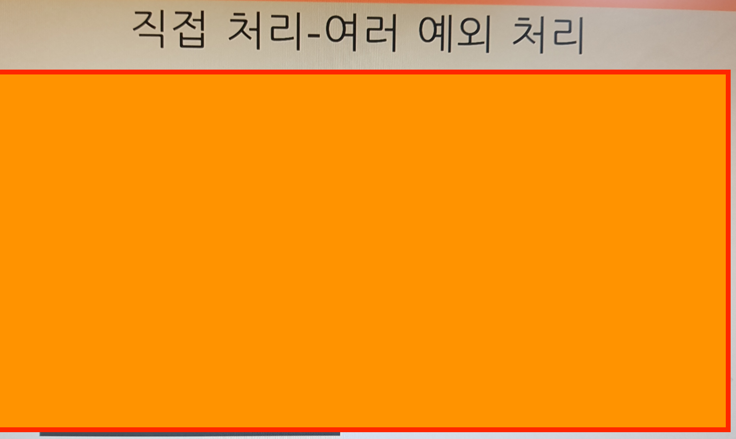 이번 주에 배웠던 내용중 중요한 부분인 예외처리 부분이다. 실제로 자바를 예습할 때에 예외처리에 대한 얘기를 종종 들었던 것 같다. 언제 배우나 했는데 자바 마무리 수업 때 배우게 되었다. 예외처리라는 것은 말 그대로 프로그램을 실행함에 있어서 오류가 발생할 경우 그 부분을 제외하고 다른 정상적인 범위를 실행하는 처리다. 이 부분은 실제 현업에서도 굉장히 많이 사용하는 것 같다.
