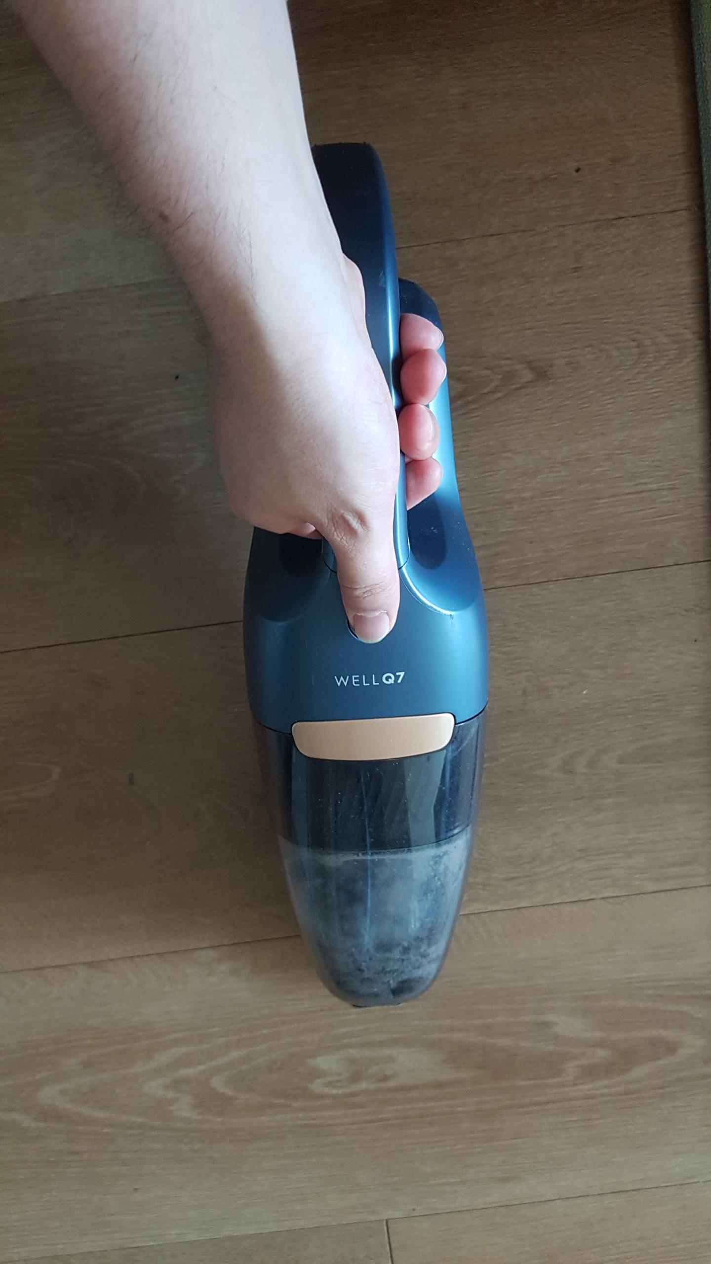 간이 청소기 부분에도 전원 버튼이 따로 있다. 엄지 손가락이 바로 닿는 위치에 있어서 조작이 편리하다.