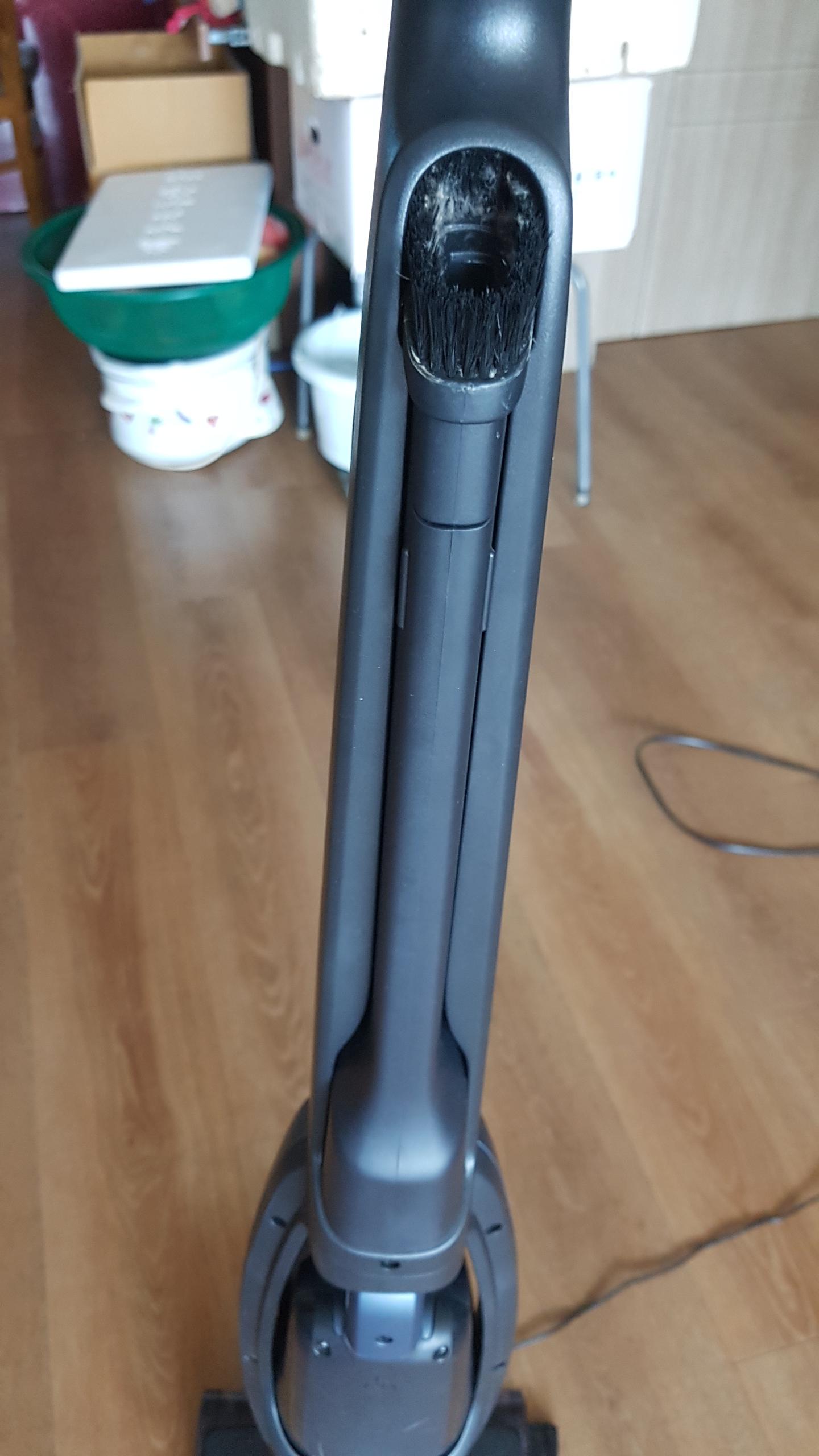 청소기 뒤에는 청소기 입구에 꽂아서 사용할 수 있는 브러시가 있다. 브러시 길이가 생각보다 길어서 허리를 많이 숙이거나 기어 다니면서 청소할 필요가 없다.