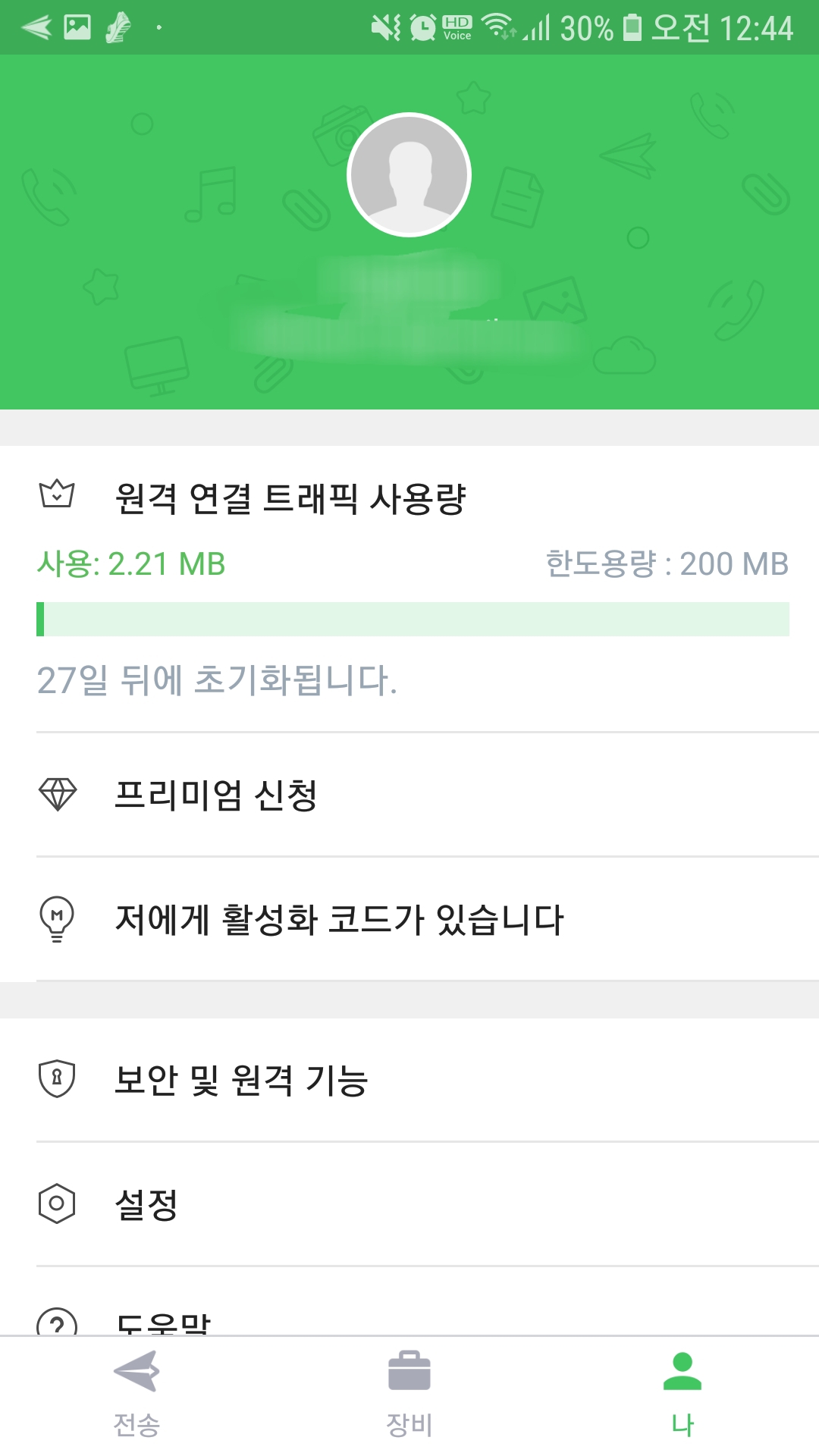 그러고 나서 아래 '나'를 클릭하면 상세 정보를 볼 수 있다. 에어드로이드(AirDroid)는 유료 어플이다. 무료로는 월 최대 200MB까지만 이동이 가능하다. 적다고 할 수도 있지만 급할 때 이마저도 없으면 진짜 난처한 상황이 생길 수도 있다.