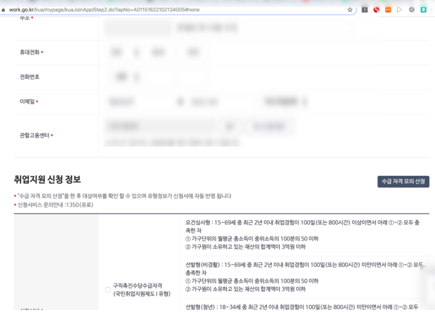 실제 경험했던 국민취업지원제도 2유형 신청하기 1단계 - 2