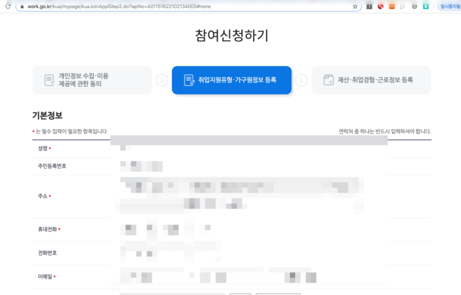 그러면 참여신청하기가 나온다. 여기서는 이름과 주민등록번호, 주소, 휴대전화 등의 인적 사항을 입력하면 된다.