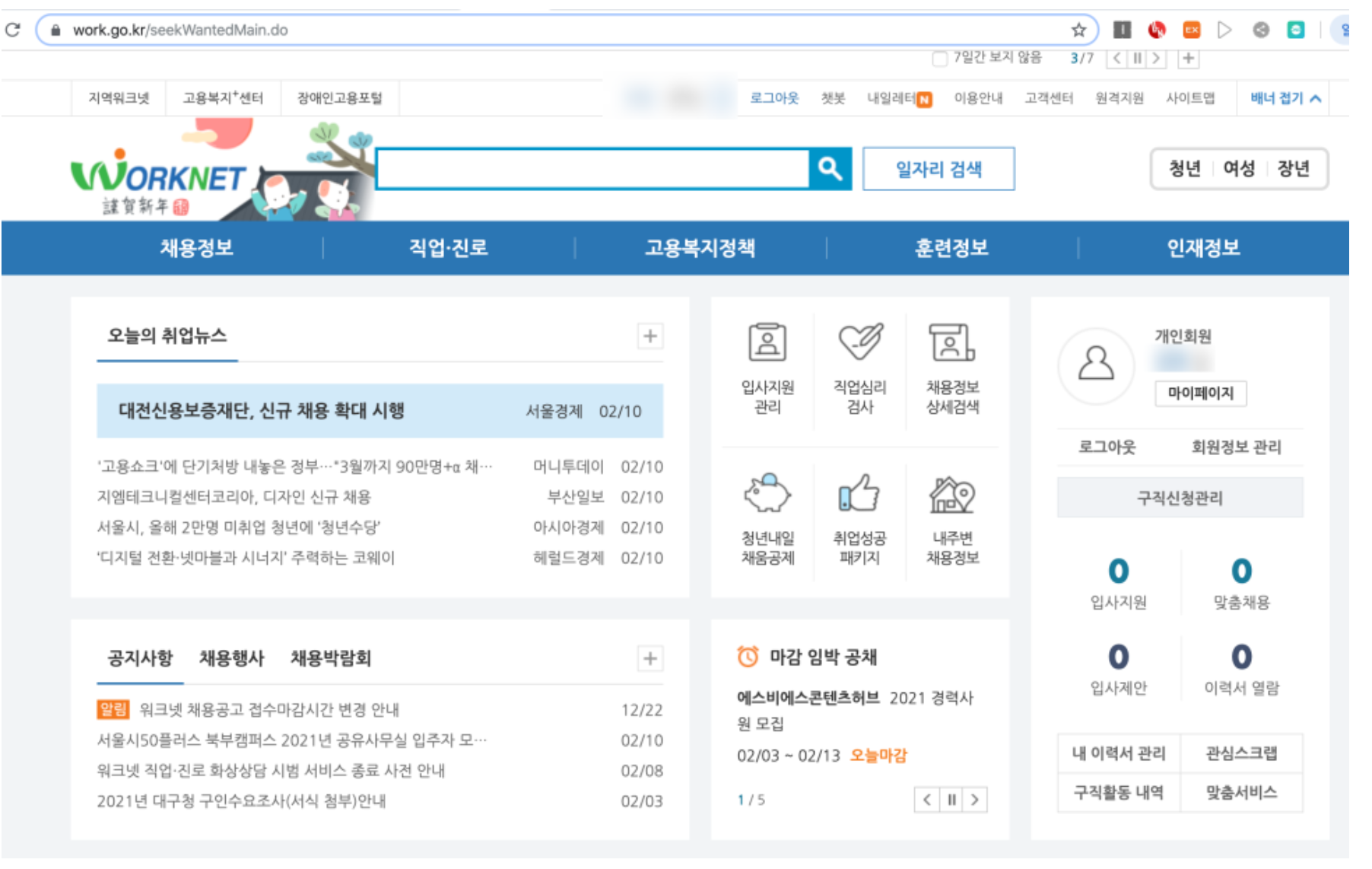 먼저 국민취업지원제도를 신청하려면 워크넷에서 구직신청을 해야한다. 워크넷에 로그인을 한 다음에 오른쪽 중간에 구직신청관리를 클릭하면 된다. 그러면 간단하게 몇 가지를 입력하라고 나오는데 입력 및 체크를 하면 끝난다.