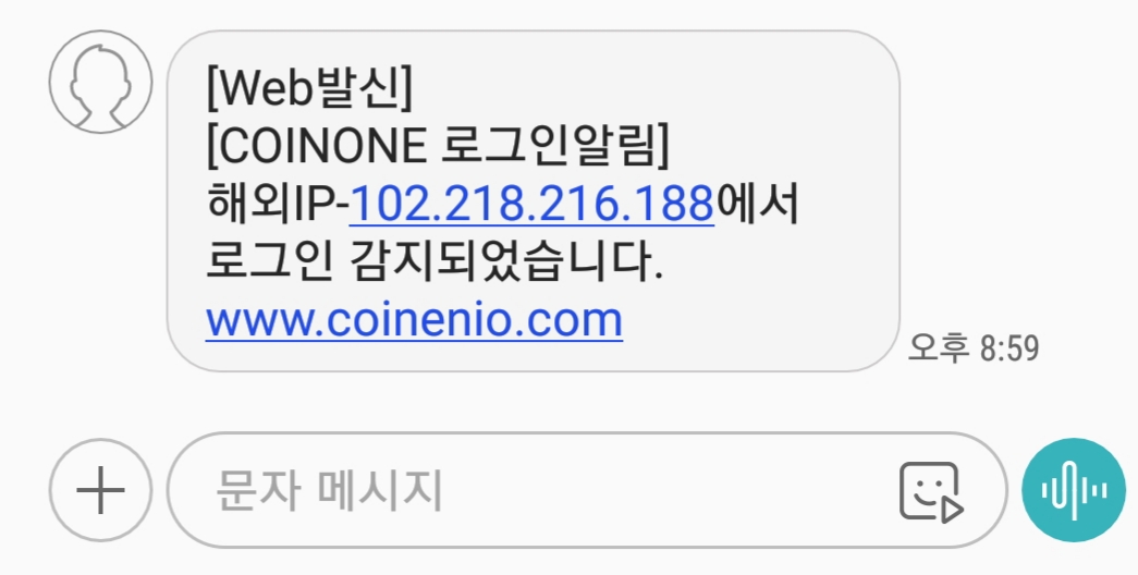 예전에 우연히 핸드폰으로 이런 문자가 왔다. 코인원이라는 사이트에서 내 아이디로 로그인을 했다는 것이다. 그러면서 URL 주소까지 같이 왔다. 물론 난 코인을 하지 않기 때문에 계정도 없고 코인원이라는 사이트도 몰랐어서 사기 문자라는 것을 알았지만 만약 진짜로 코인원에서 코인을 하는 사람이라면 당할 수도 있다는 생각이 들었다.