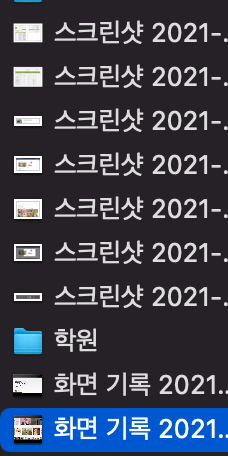 부분화면 녹화는 내가 지정한 부분만 따로 녹화가 된다. 더 정교하고 필요한 부분만 녹화가 가능해서 유튜브 영상을 만들 때 진짜 요긴하게 사용할 것 같다. 아니면 강의 영상을 만들 경우에도 참 좋을 듯 싶다. 단축키는 command + shift + 7