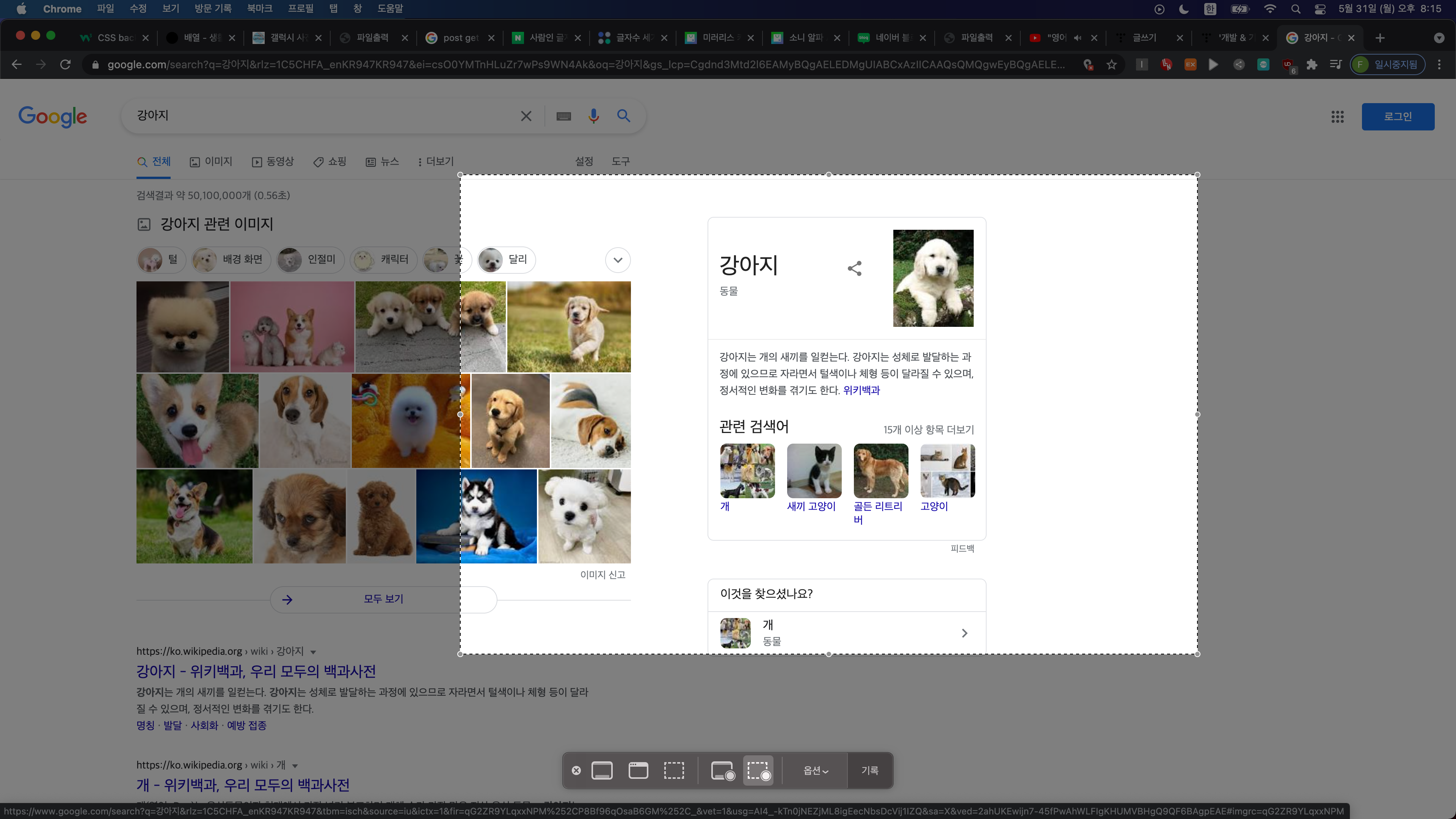 여기에는 다섯 가지의 기능이 있는데 맨 위에서 언급한 대로 왼쪽 세개는 전체 캡쳐, 선택 캡쳐, 부분 캡쳐이고 오른쪽 두 가지는 전체 녹화, 부분 녹화 기능이다. 녹화 기능은 화면에서의 움직임을 녹화하는데 나는 개인적으로는 별로 사용하지는 않지만 분명 이 기능을 엄청 많이 쓰는 일을 하는 사람도 있을 것이라는 생각이 든다.