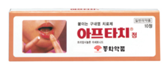 아프타치는 붙이는 약이다. 동그란 조그마한 약을 구내염이 있는 자리에 붙여서 치료하는 방식이다. 나름 효과가 있는 구내염 치료제로 알려져있다.
