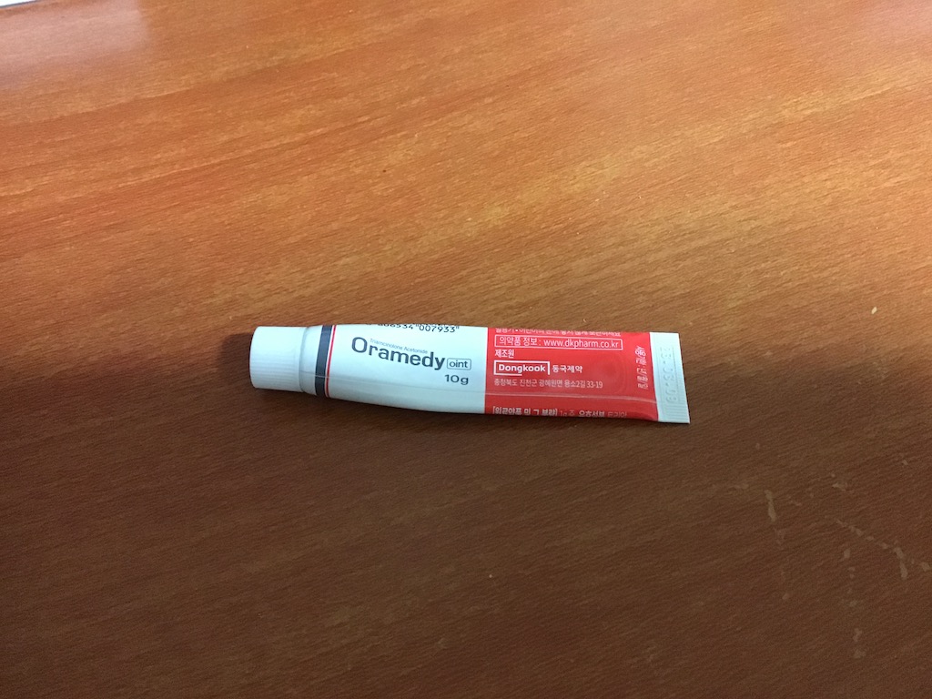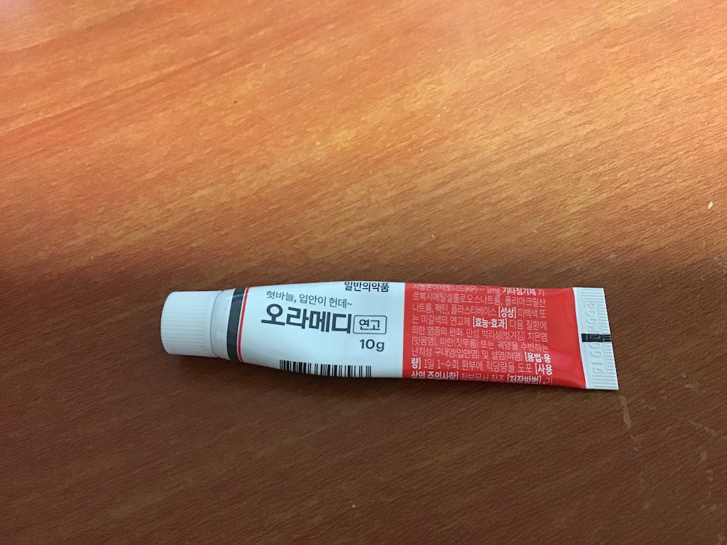 그리고 마지막으로 오라메디가 있다. 오라메디는 옛날부터 유명했던 연고다. 아마 후시딘과 쌍벽을 이루는 연고가 아닐까 싶다. 주로 입 안에 상처를 치료해주는 연고로 알려져 있다.