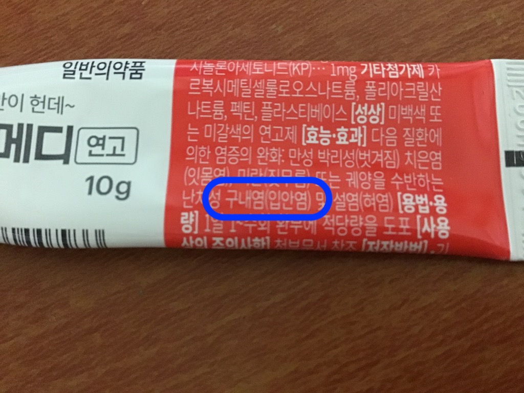혹시나 잘 모르는 사람들을 위해서 말하자면 오라메디의 효능에는 구내염에 효과적이라는 말도 있다. 잘만 사용한다면 구내염에도 효과가 있다는 것이다.
