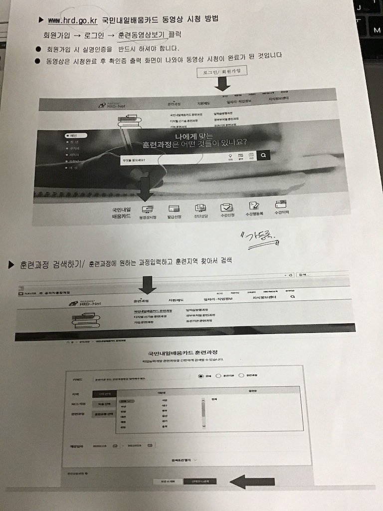 - 국민 내일 배움 카드 동영상 시청(www.hrd.go.kr)
