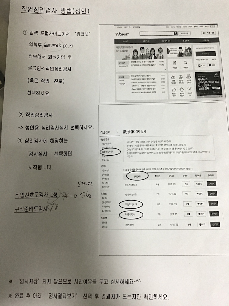 직업심리검사는 직업선호도 검사 L형과 구직 준비도 검사를 하면 된다. 이 부분에 대해서는 상담사가 직접 자세히 설명해줄 것이다.